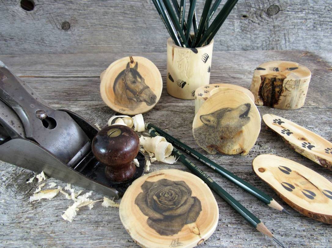 We offer a unique range of handmade ring boxes and pine collectibles featuring original wildlife and animal art. Each item is made by hand from wood we gather using our horses from the mountains of Montana.